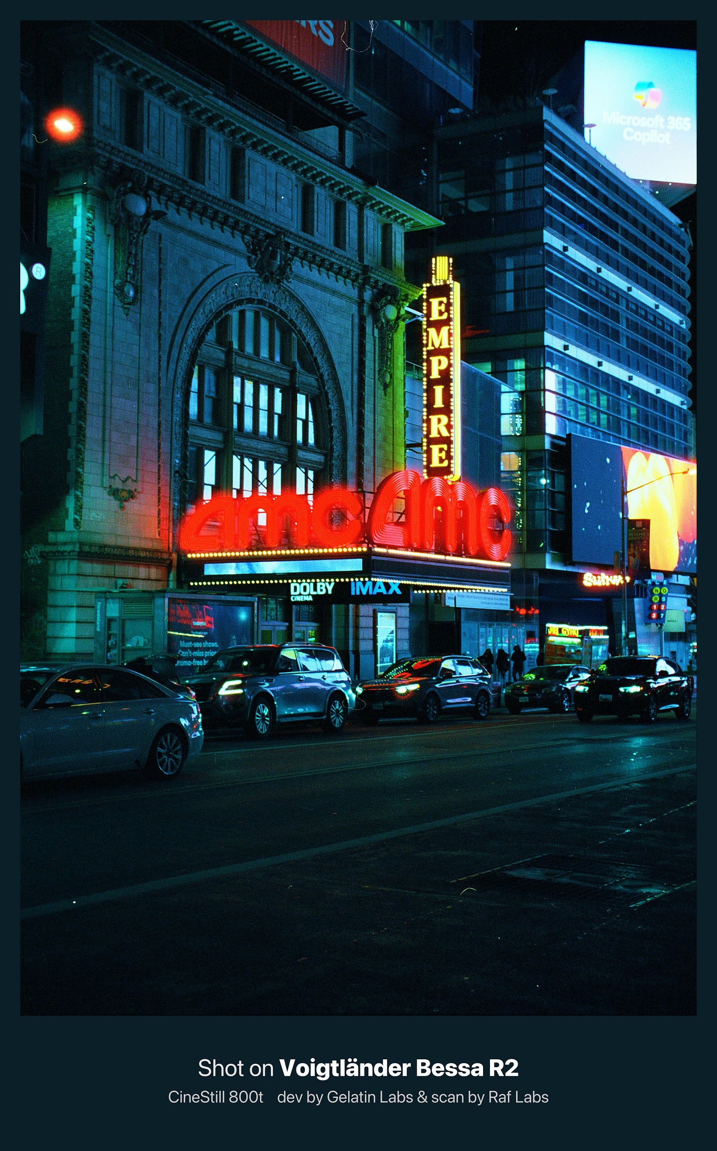 Whether you shoot a high-end Leica or a cheap point-and-shoot, this tungsten-balanced stock will still deliver the same halation, the same colors, the same cinematic magic. The glow, the atmosphere, they don’t care what camera you use. They exist within the emulsion itself.