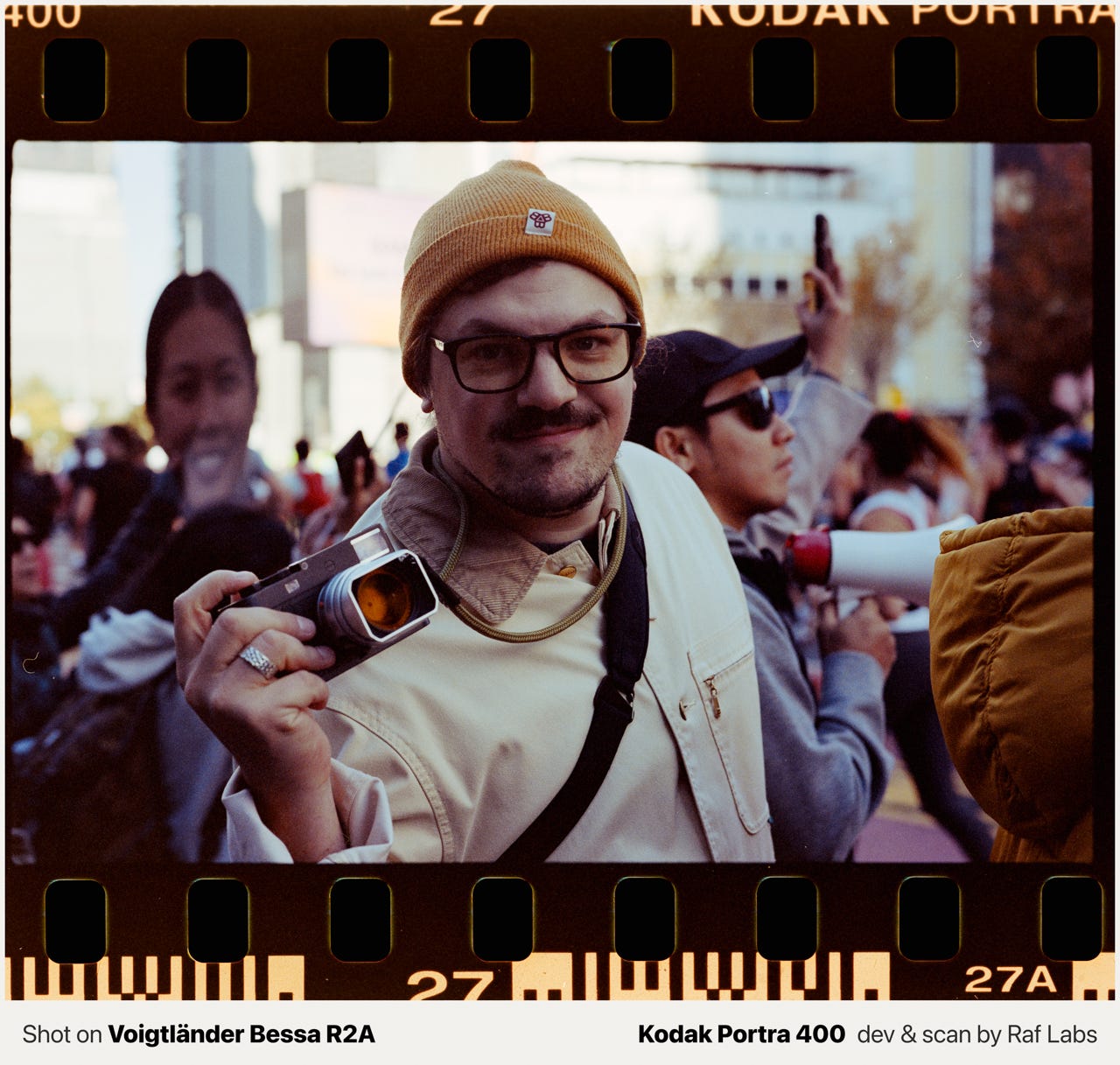 Right, in the original shot (seen above), I’m photographing with my Voigtländer Bessa R2A, and here are the shots I took on film. So you can see things from my camera angle.