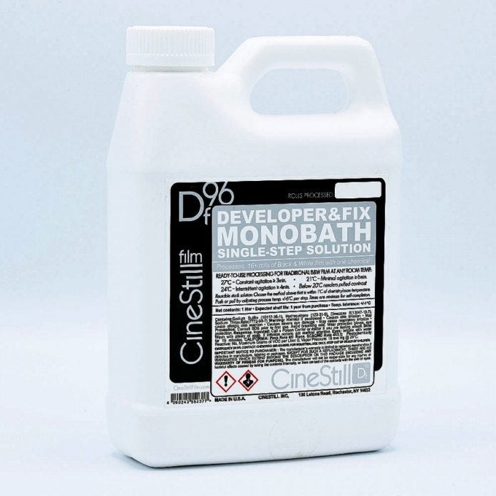 This makes the pitch for CineStill Df96 hard to resist. One bath, three minutes (fresh chems), flexible room temperature, add 15 seconds per roll. No stop, no fix, no second pour. For anyone new to home developing, or anyone tired of juggling chemistry bottles, it sounds like the easy path into black and white, right?