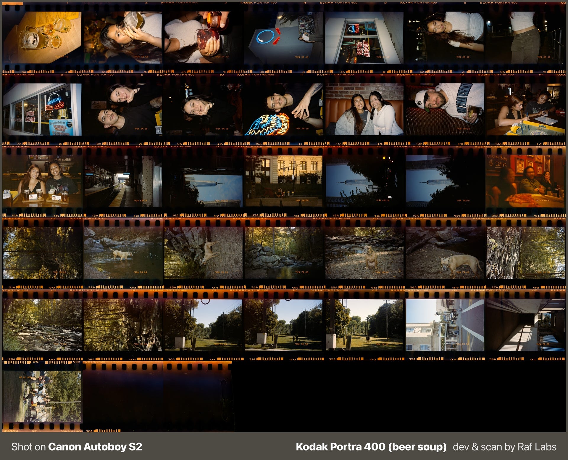 Juno handled getting our experimental rolls developed at RafLabs, and I processed the unusual negatives beautifully. I usually develop 20 rolls out of my C-41 chemicals, and I waited for these rolls to be the last ones of the chemical bottles, before recycling them.