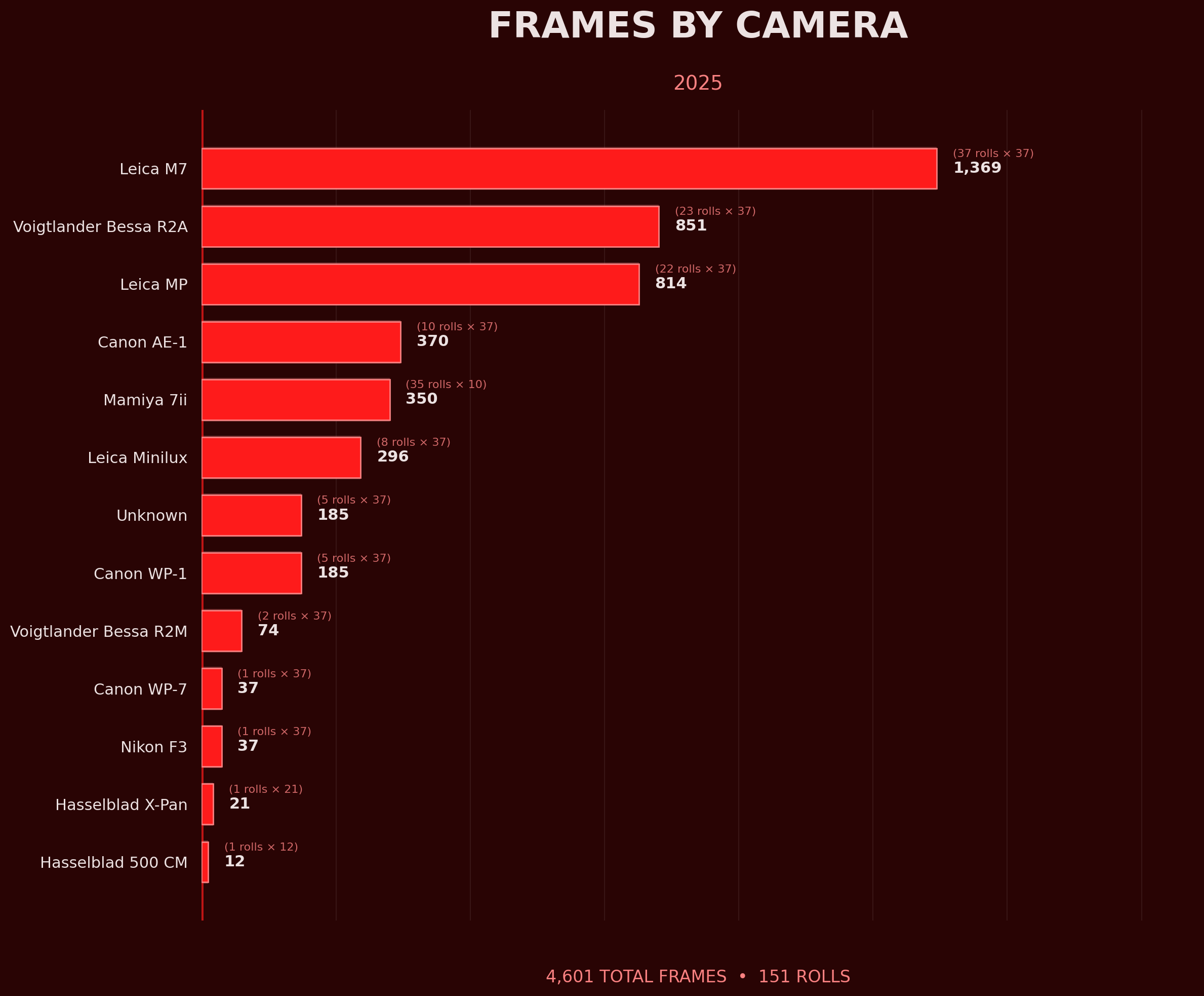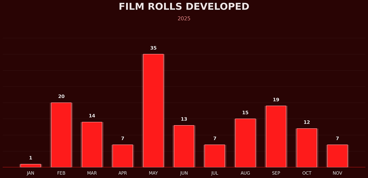 I started 2025 never having shot film. I ended it running my own lab. Here's what the data looks like for 2025.