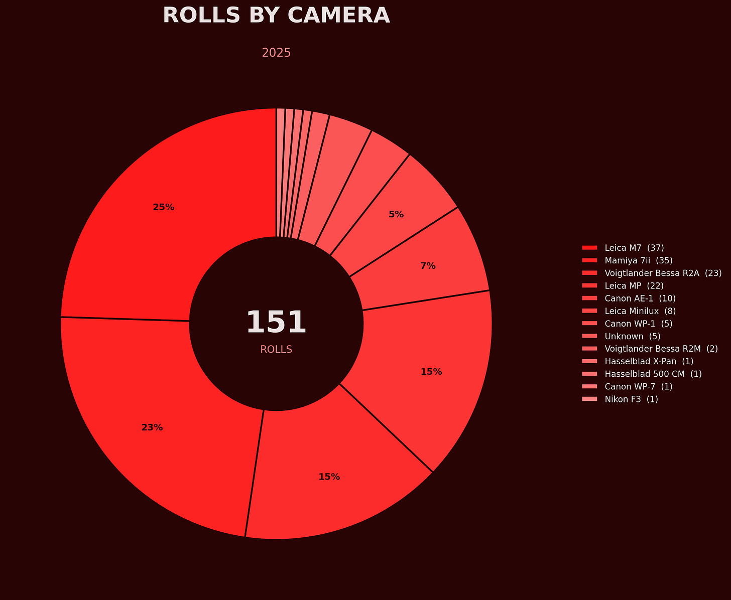 Medium format also showed up strong! The Mamiya 7ii accounted for 35 rolls but only 350 frames, since each 120 roll gives me just 10 shots. I also ran film through the Leica Minilux, Canon WP-1, Hasselblad X-Pan, and Hasselblad 500 CM (hello, Brian!)