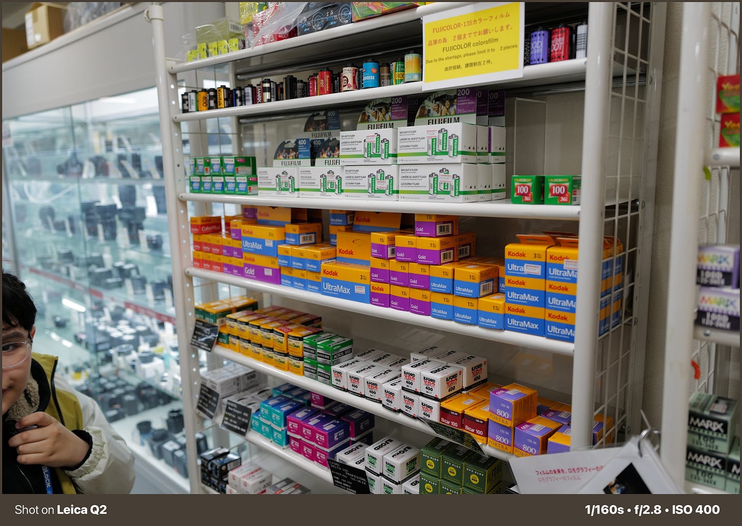 I would love to visit some of the camera shops in Japan. A coworker of my wife's went a few months back, and I mentioned that "I should have given you a list to give her to look at shops for certain film stocks." half-joking. My wife then told the coworker that and they replied "Oh I totally would have done that!" which is pretty awesome!