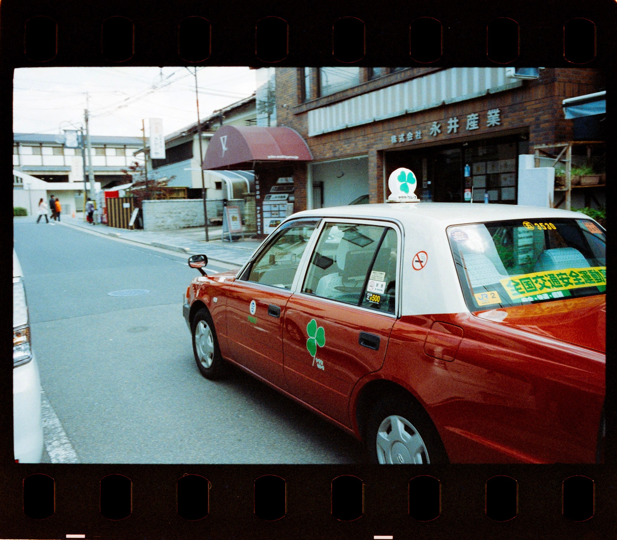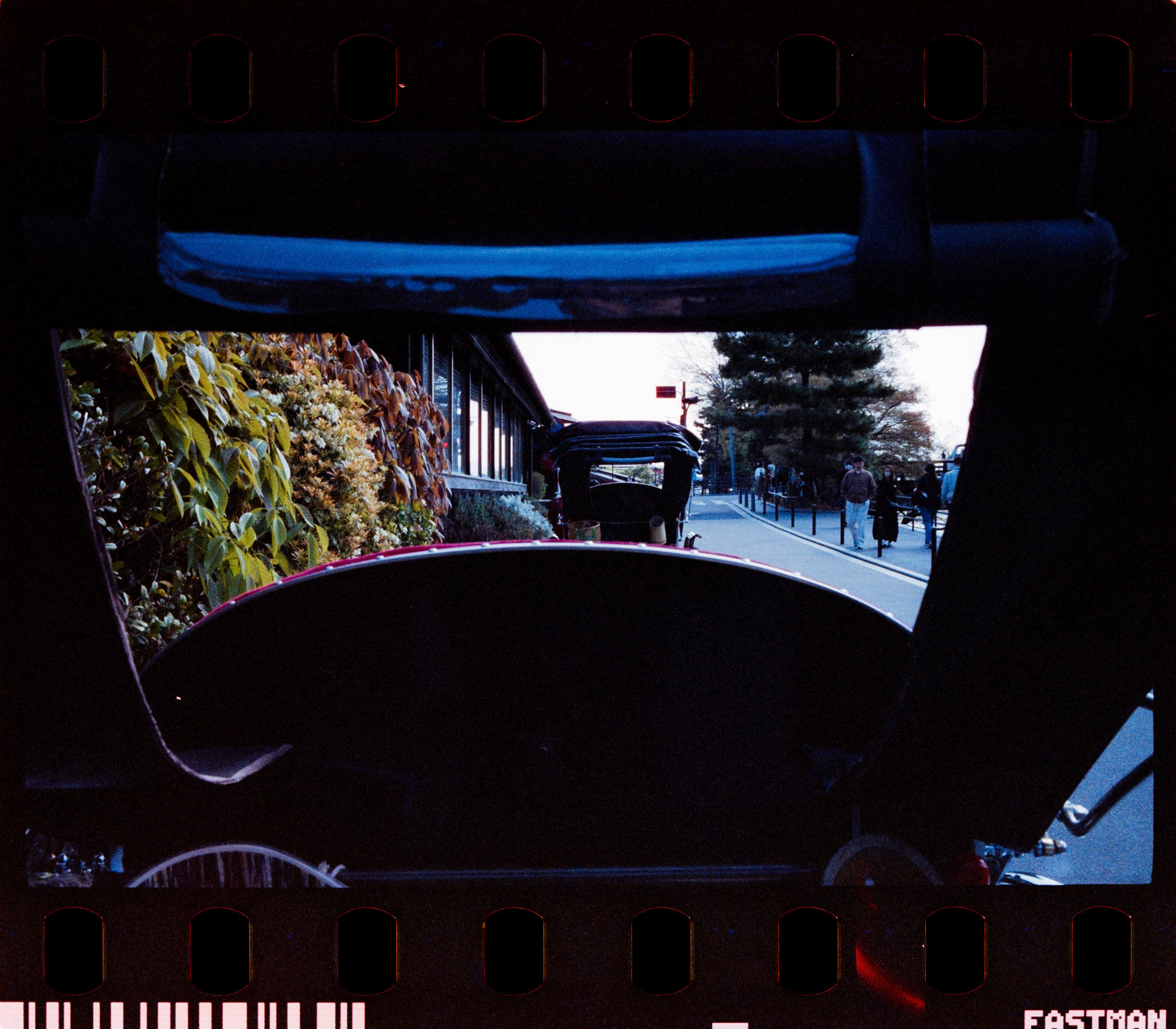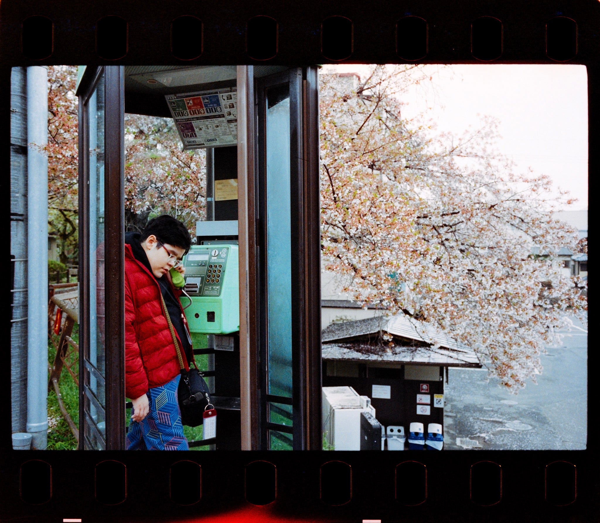 Japan’s CineStill alternative (Marix). Kodak respool, less halation, great grain. Phone booths, Philosopher’s Path, cherry blossom, bamboo forest, taxis and their cute rearview mirrors.
