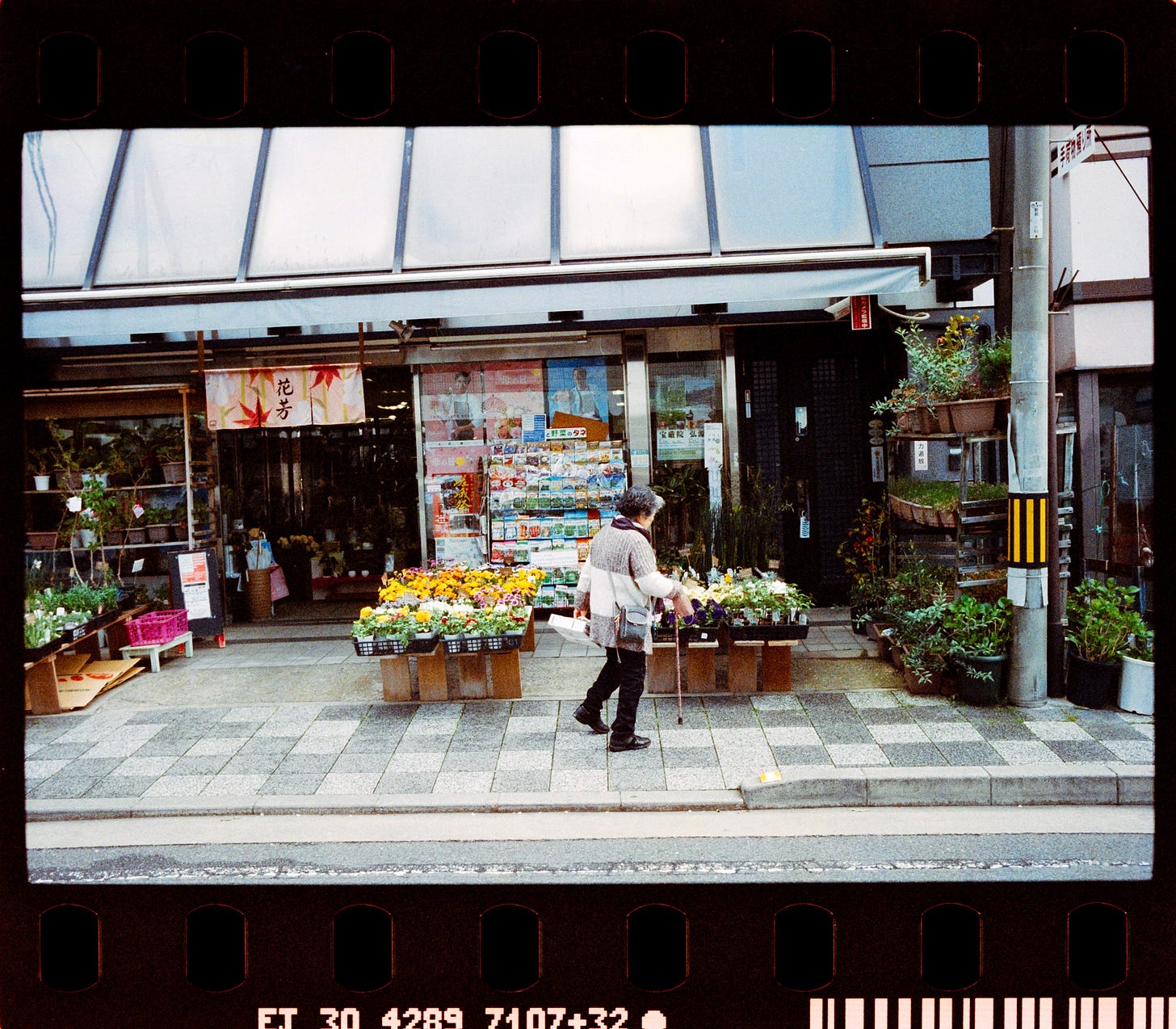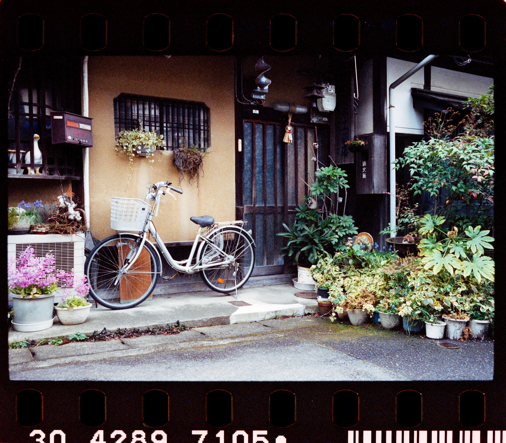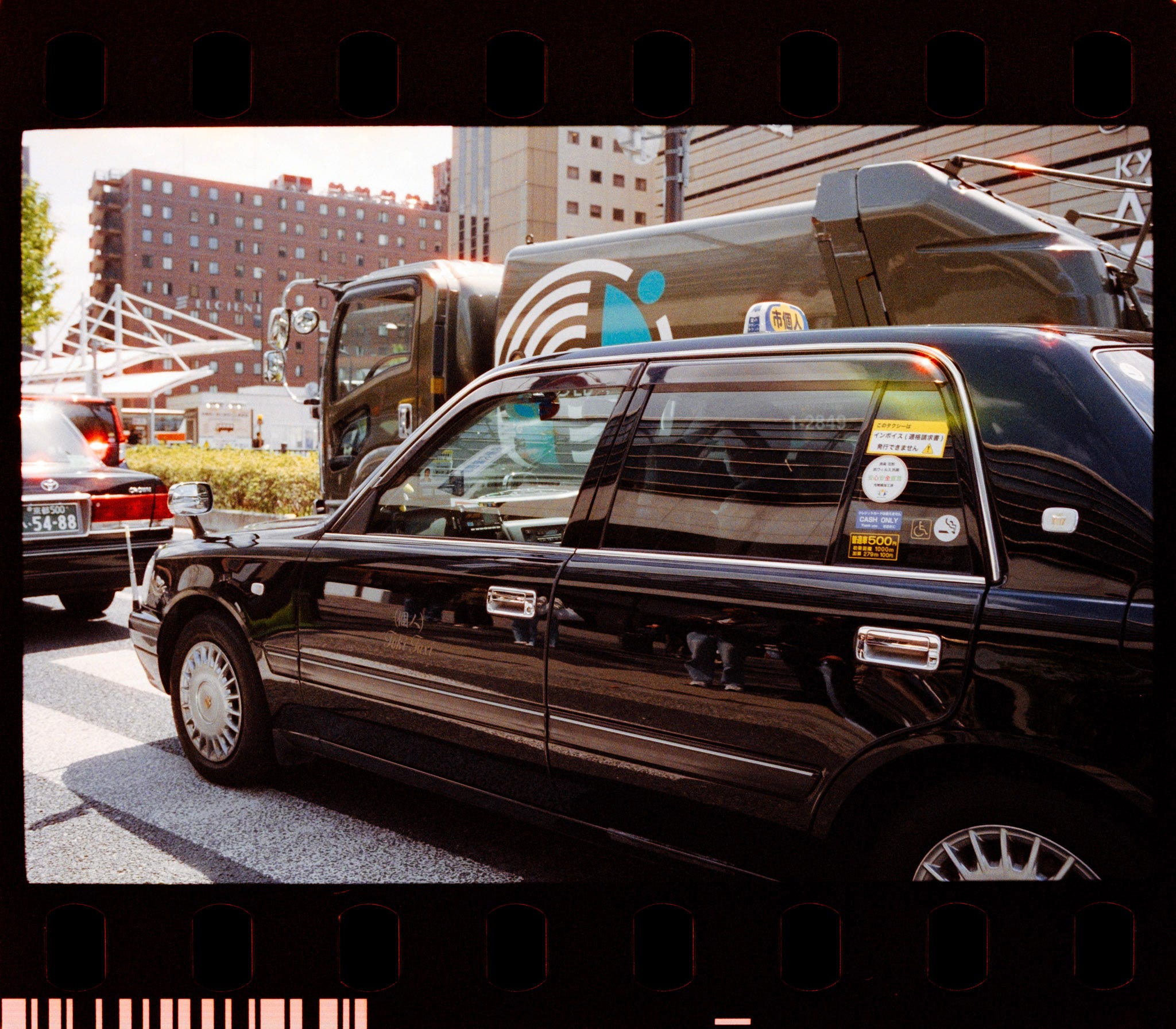Japan’s CineStill alternative (Marix). Kodak respool, less halation, great grain. Phone booths, Philosopher’s Path, cherry blossom, bamboo forest, taxis and their cute rearview mirrors.