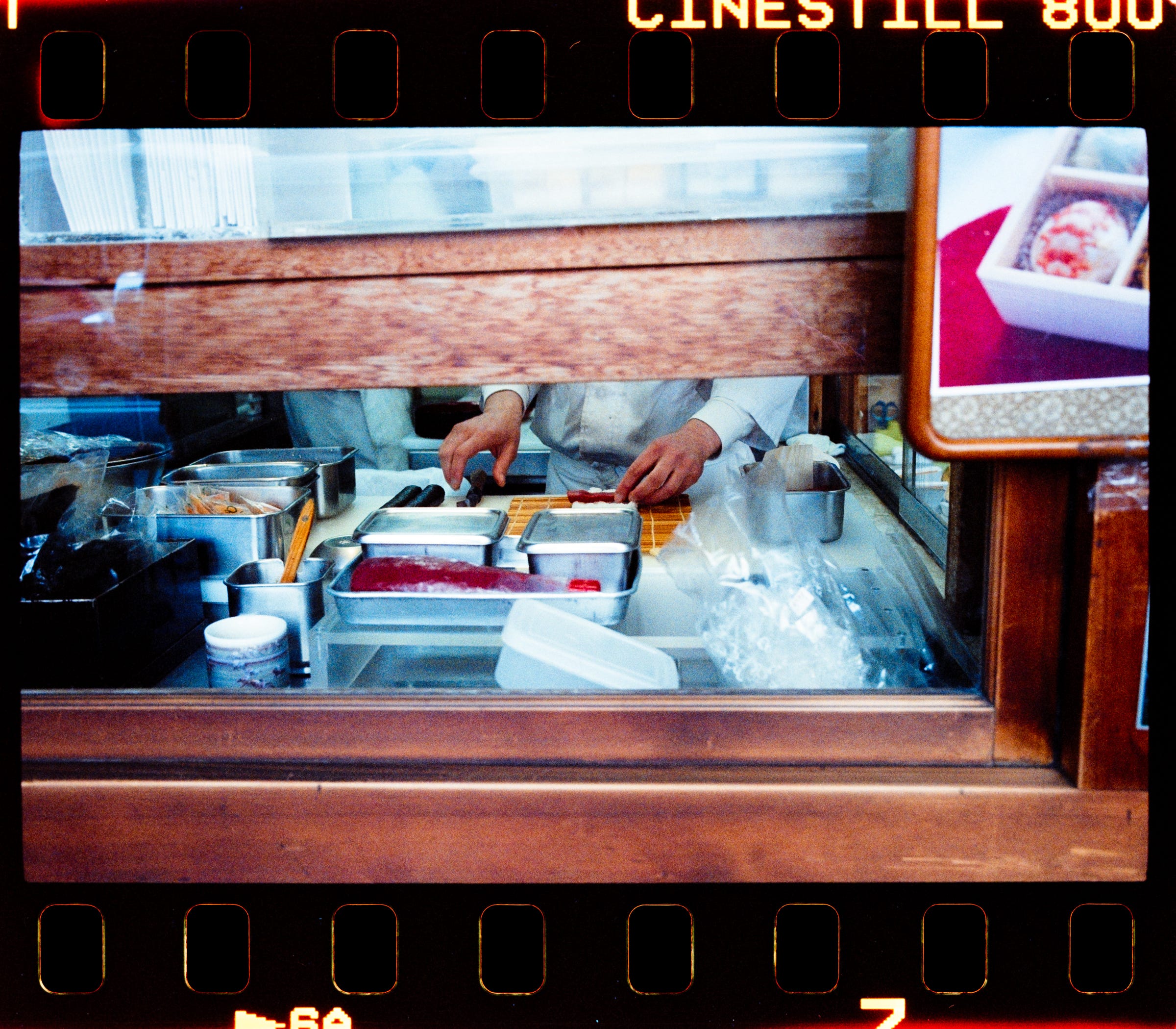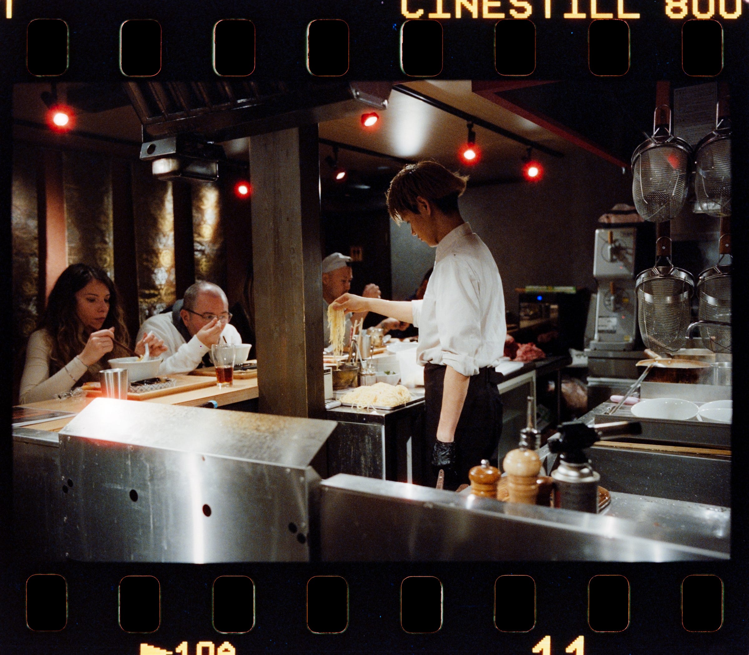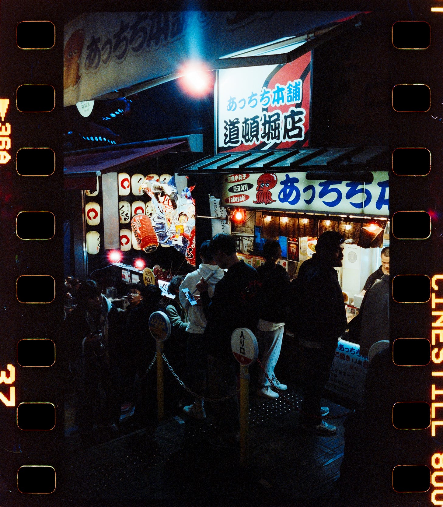 This photo was taken at this precise location, and the restaurant’s name you see on the photo is 다코야끼집. This is the perfect scene for the CineStill 800T.