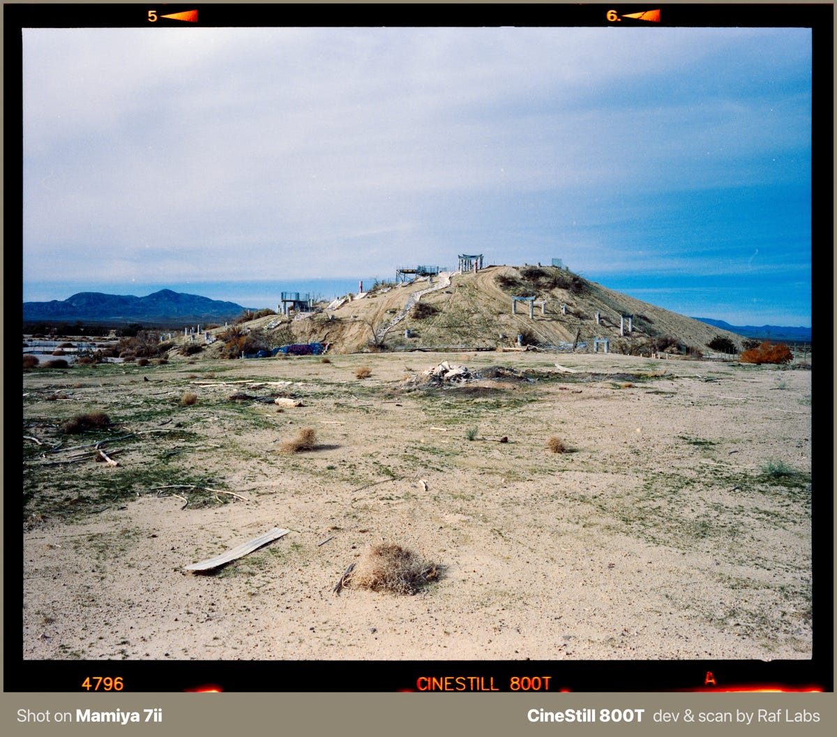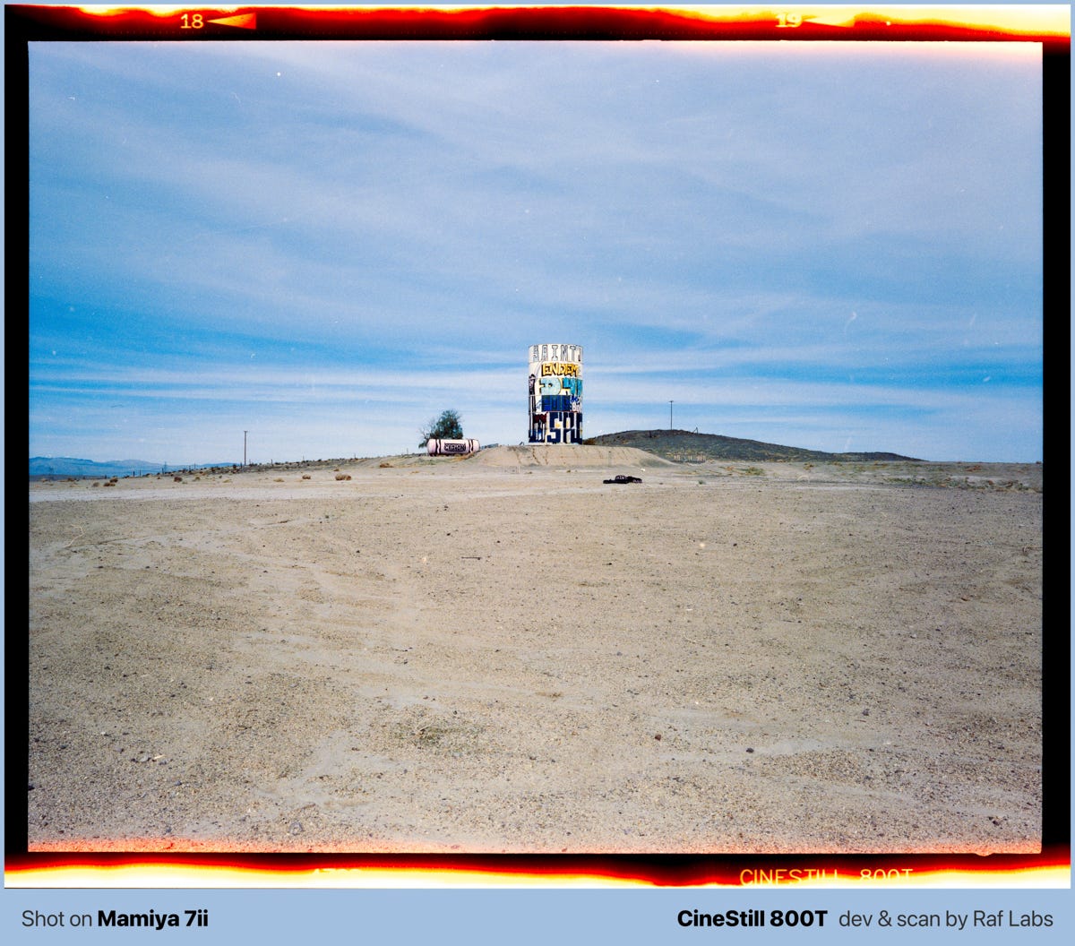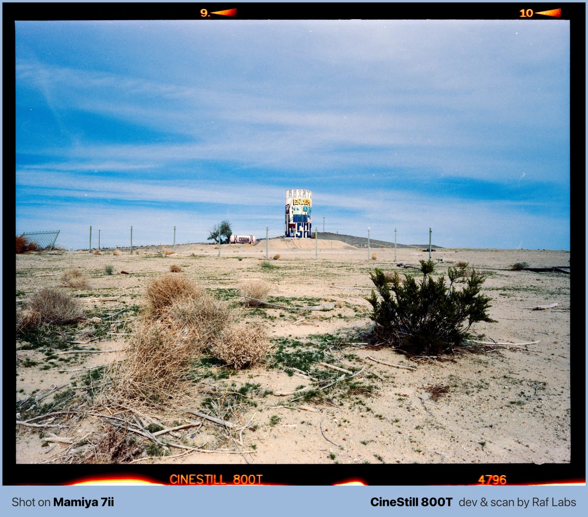 In this post, you will find a mix of medium format photos and information about the place. If you are driving from Nevada to LA, I strongly suggesting researching about what exit to take in order to make some photos.