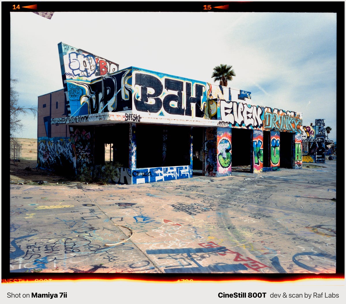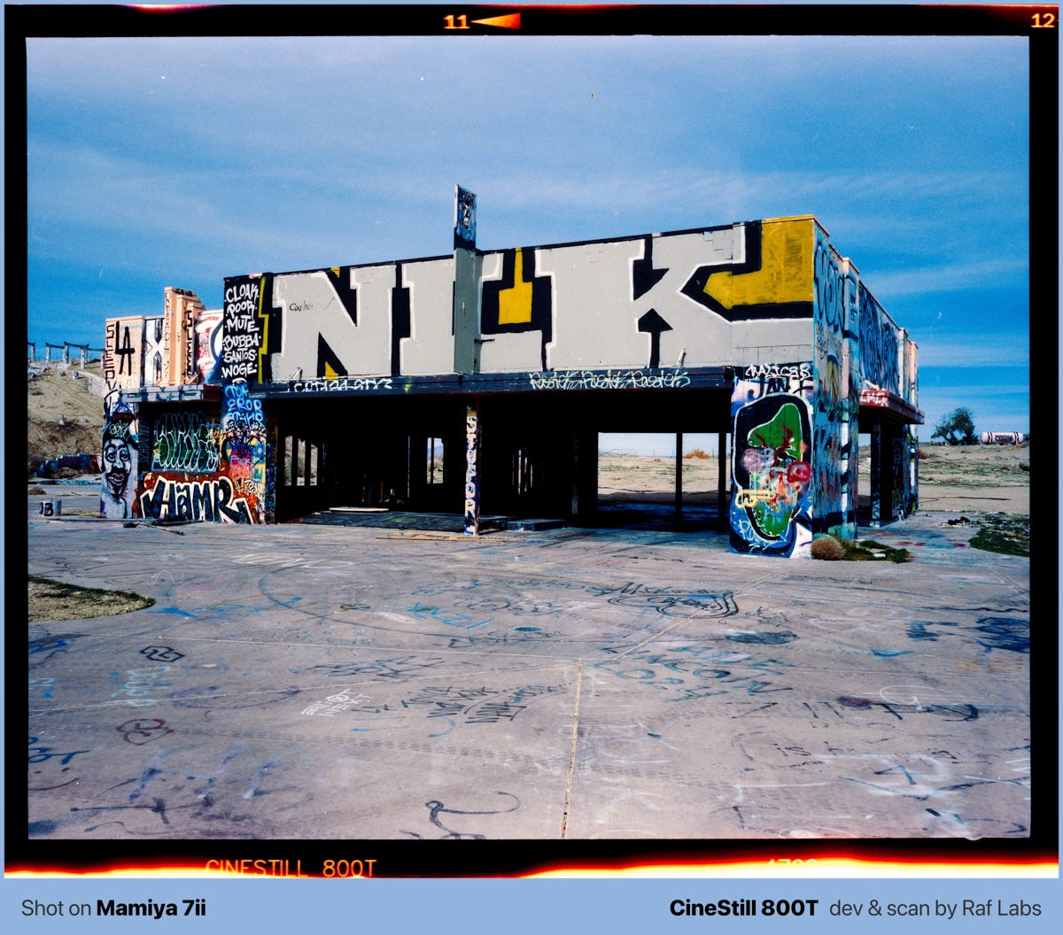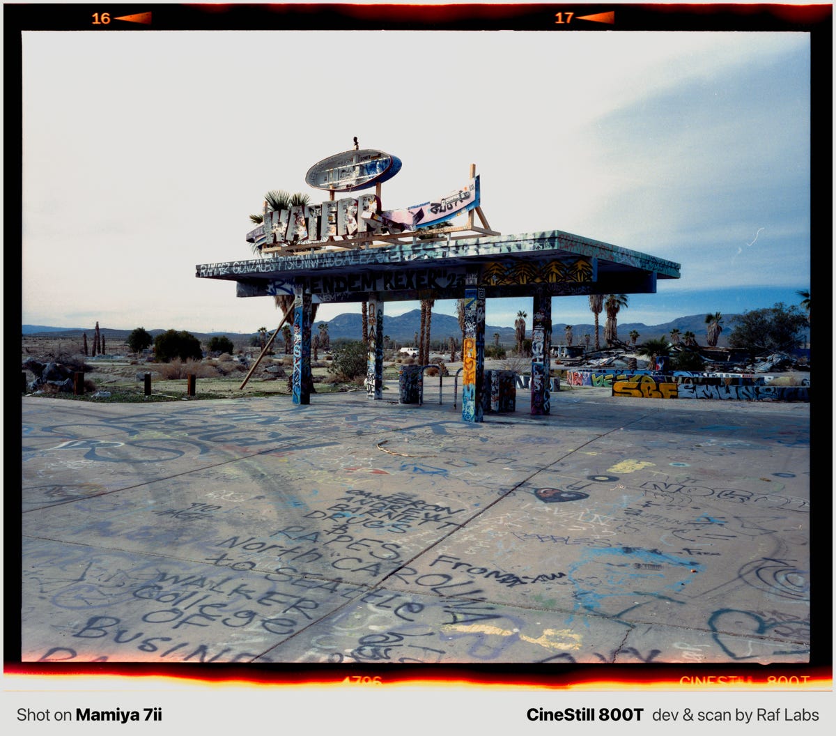 In this post, you will find a mix of medium format photos and information about the place. If you are driving from Nevada to LA, I strongly suggesting researching about what exit to take in order to make some photos.