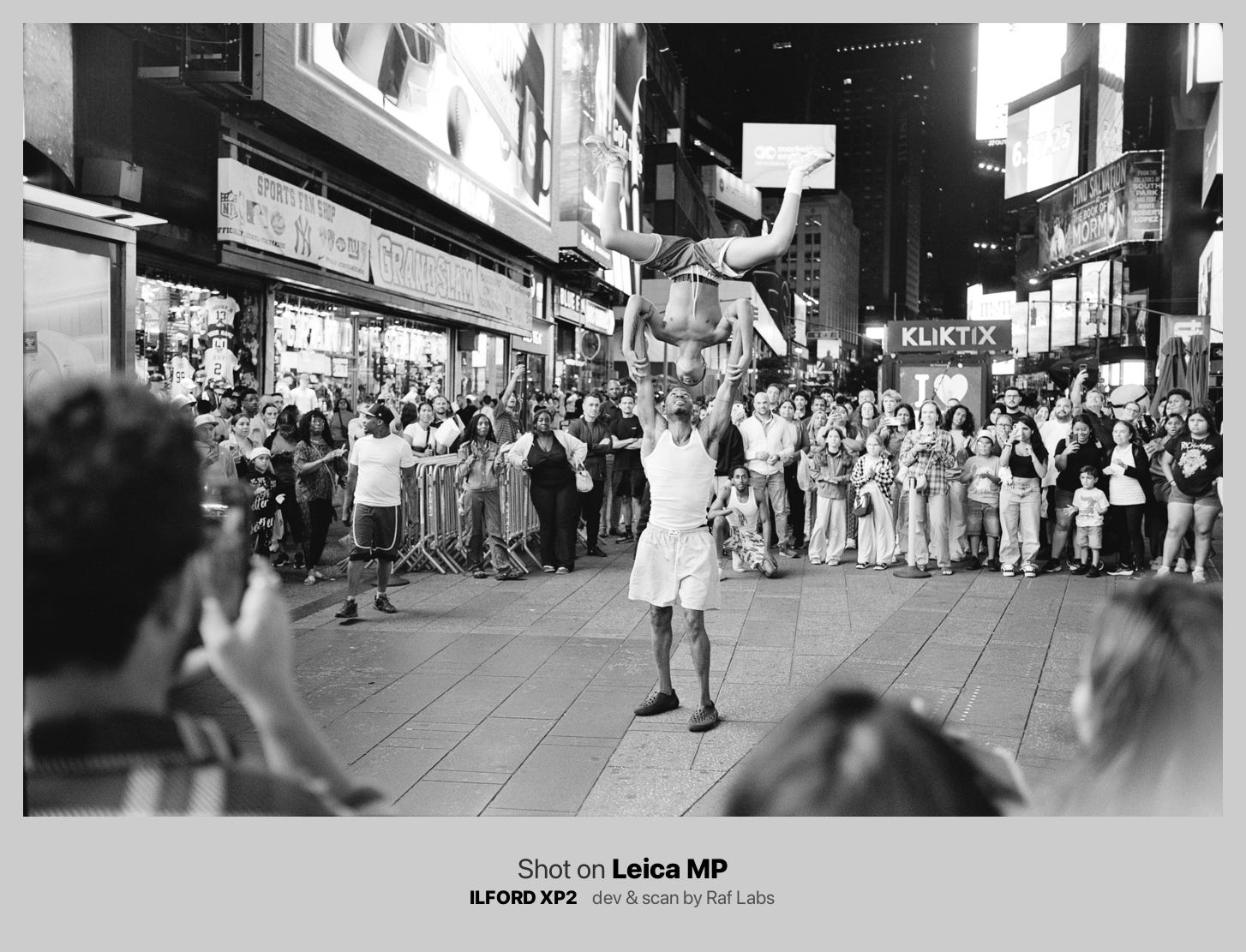 I took this in Times Square and included it at a larger size so you can see the facial expressions and where everyone is looking. These guys do street shows where they gather a crowd and jump over each other, usually lining up volunteers for a final big jump (they love getting kids involved). I snapped this quickly and kept walking, afraid they’d ask me to participate.