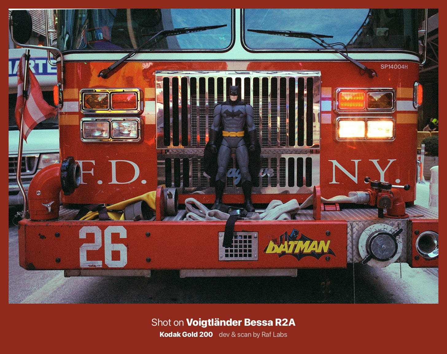 My film photography journey was just getting started in January 2025. I had begun carrying a camera with me every day, regardless of weather. This was taken during a cold NYC winter day: a Batman-themed FDNY truck. I was crossing the street when the truck stopped at the light. I took the shot quickly and kept walking, knowing I had something good in the can.