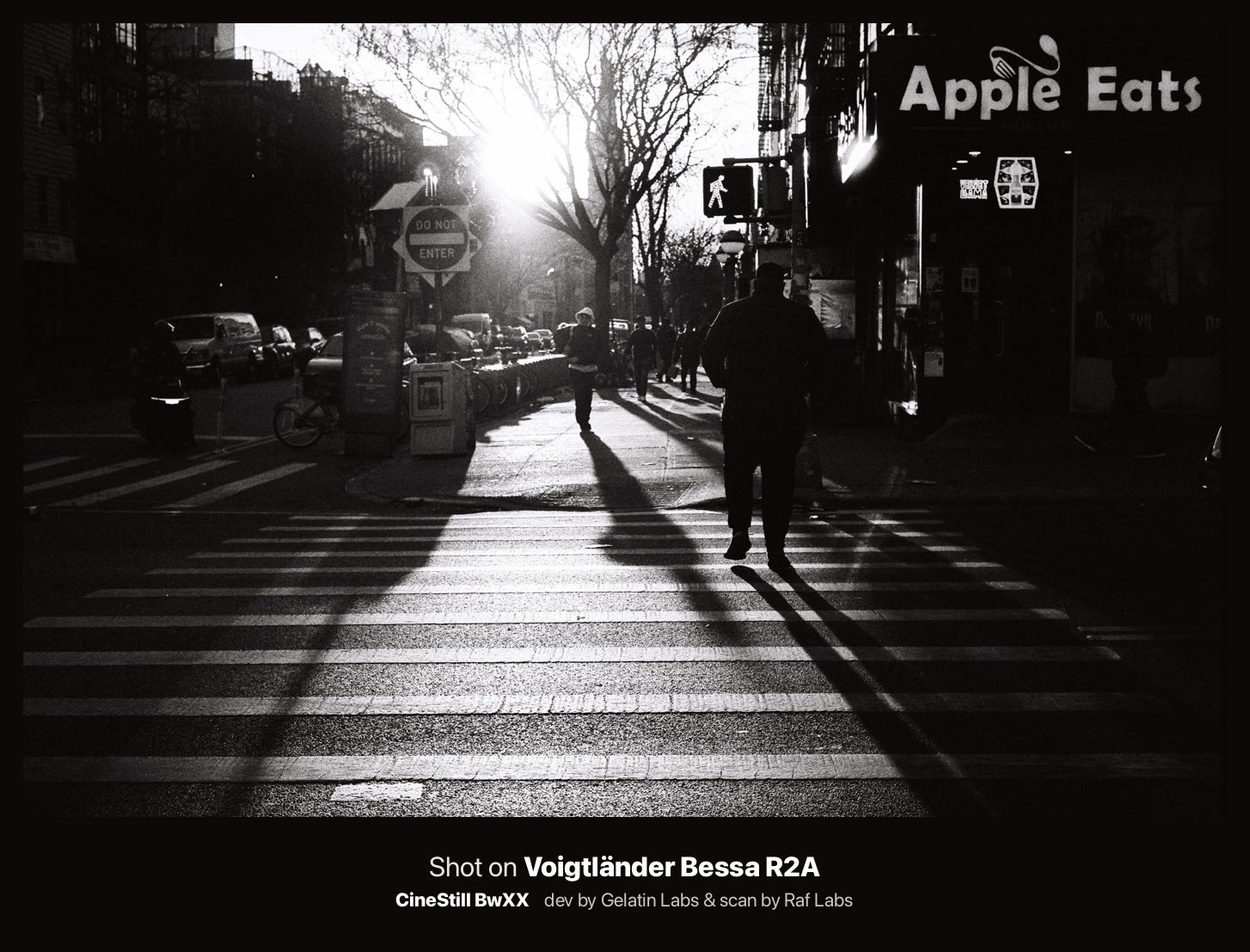 This one was taken with digital (I know, I know), but at least I used a Tri-X film simulation that does a decent job. I shot it in Manhattan during my commute to work. Although I took it on digital, I applied a film process to it: shot with a rangefinder, no LCD, and shot only once (no burst, never). I was happy to capture the walking feet without conflicting ti