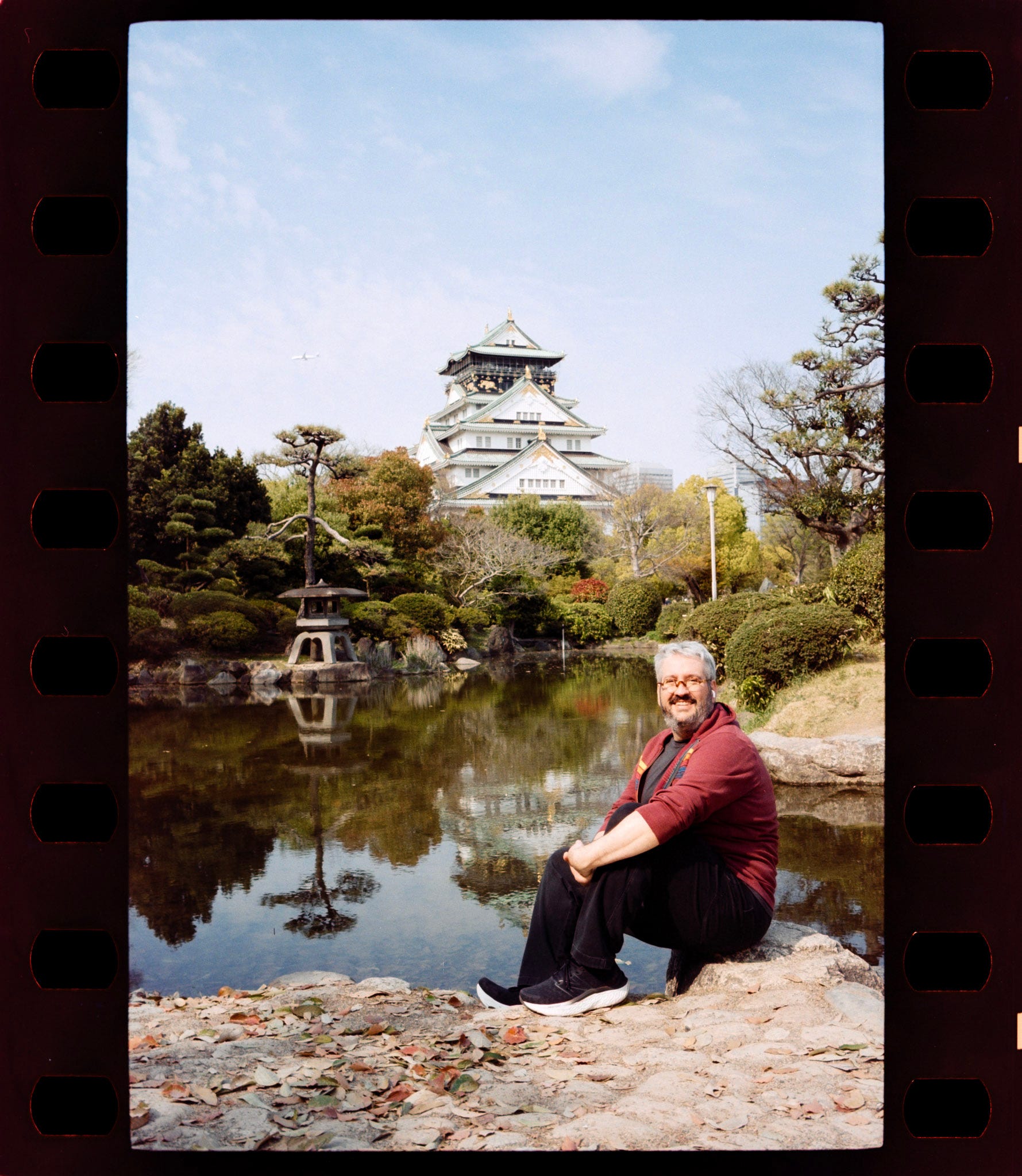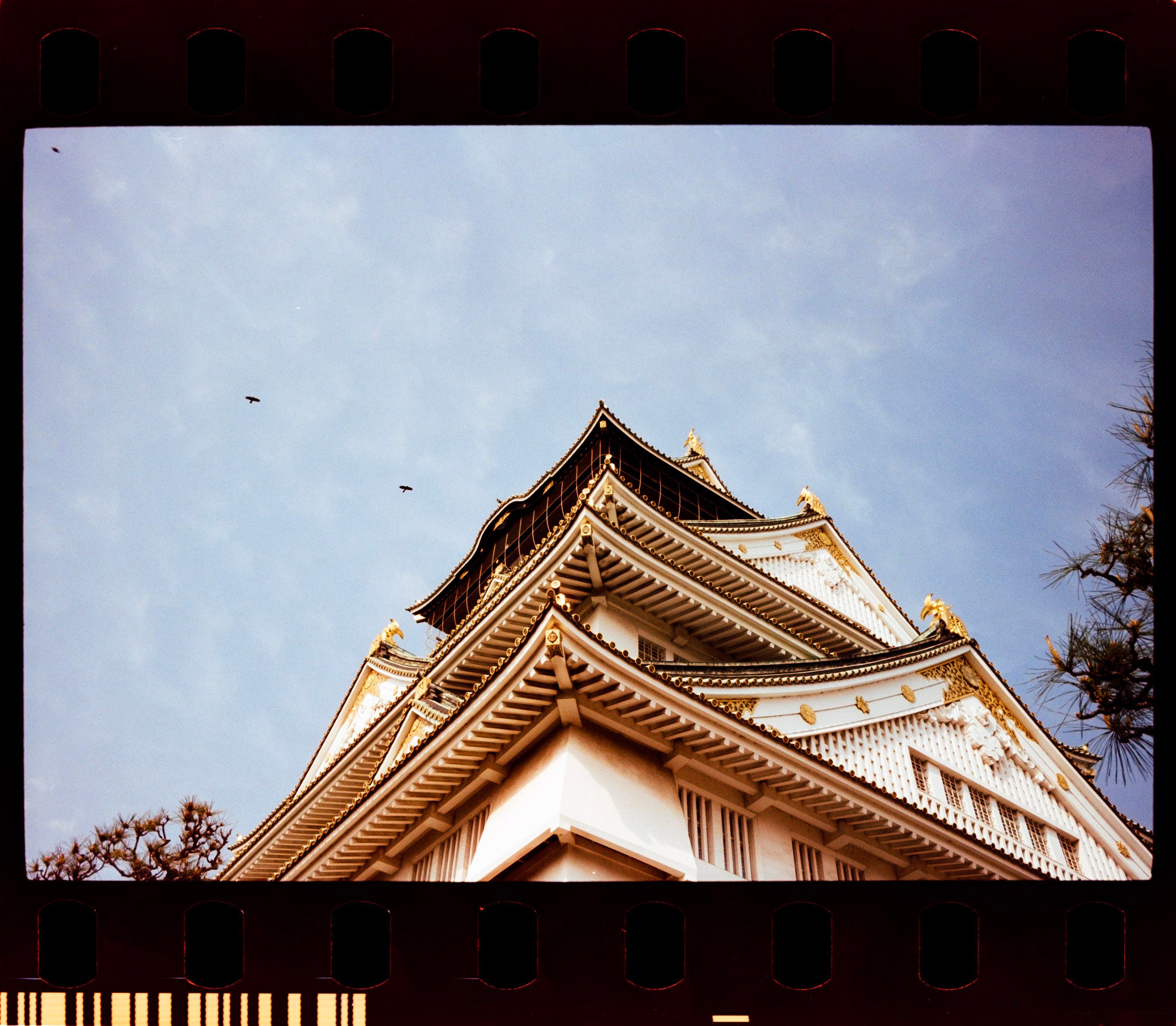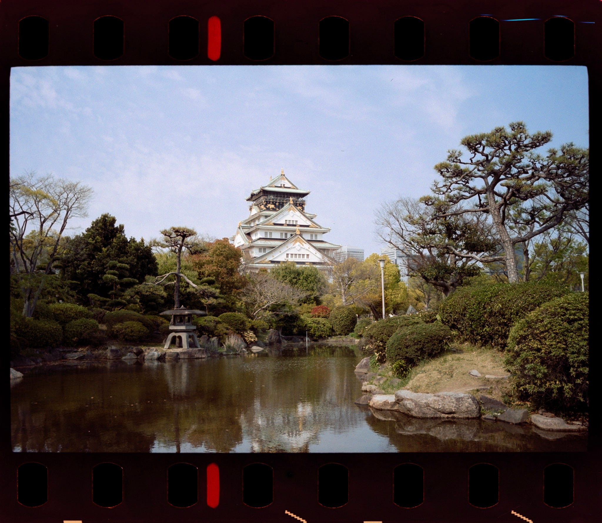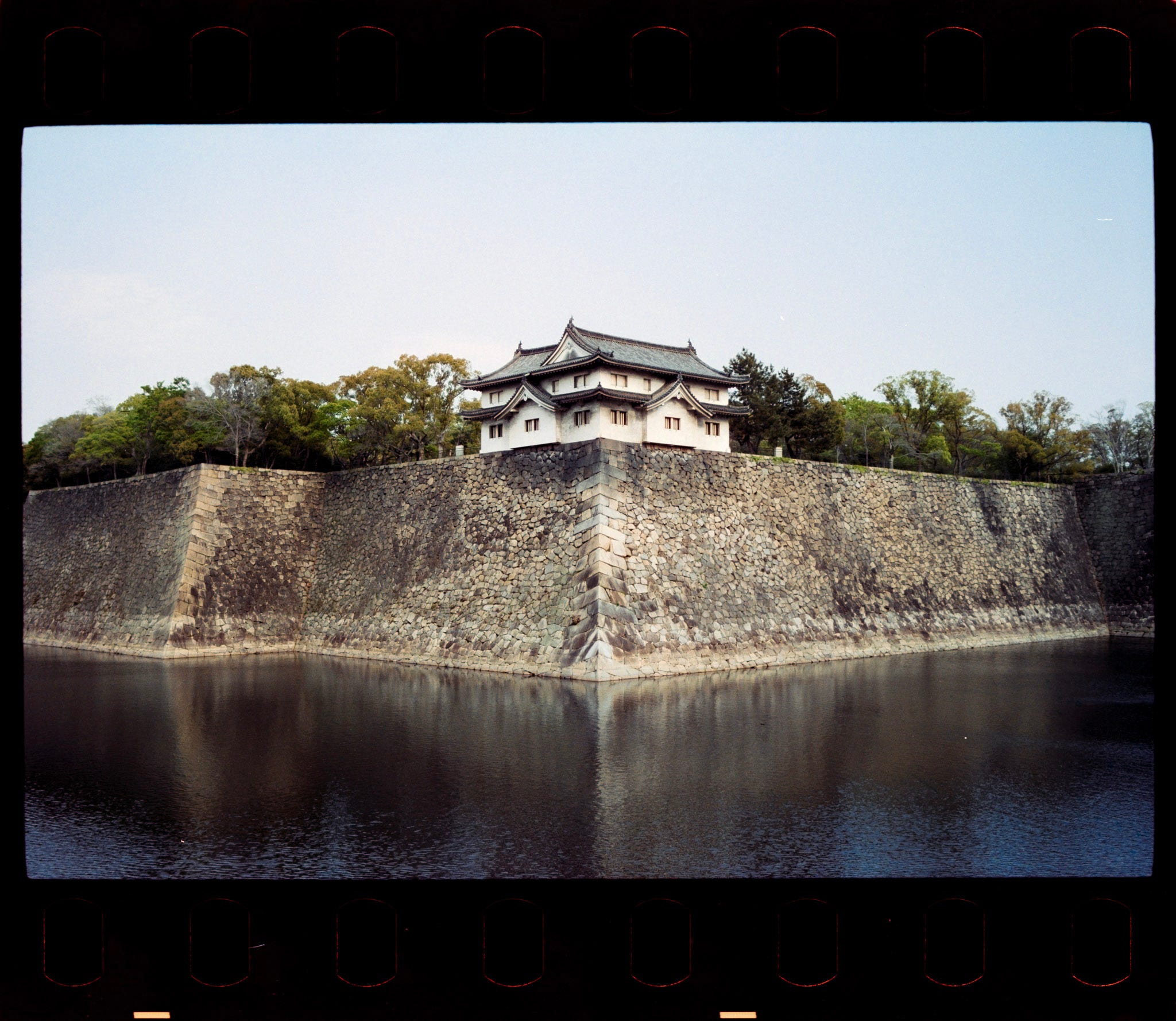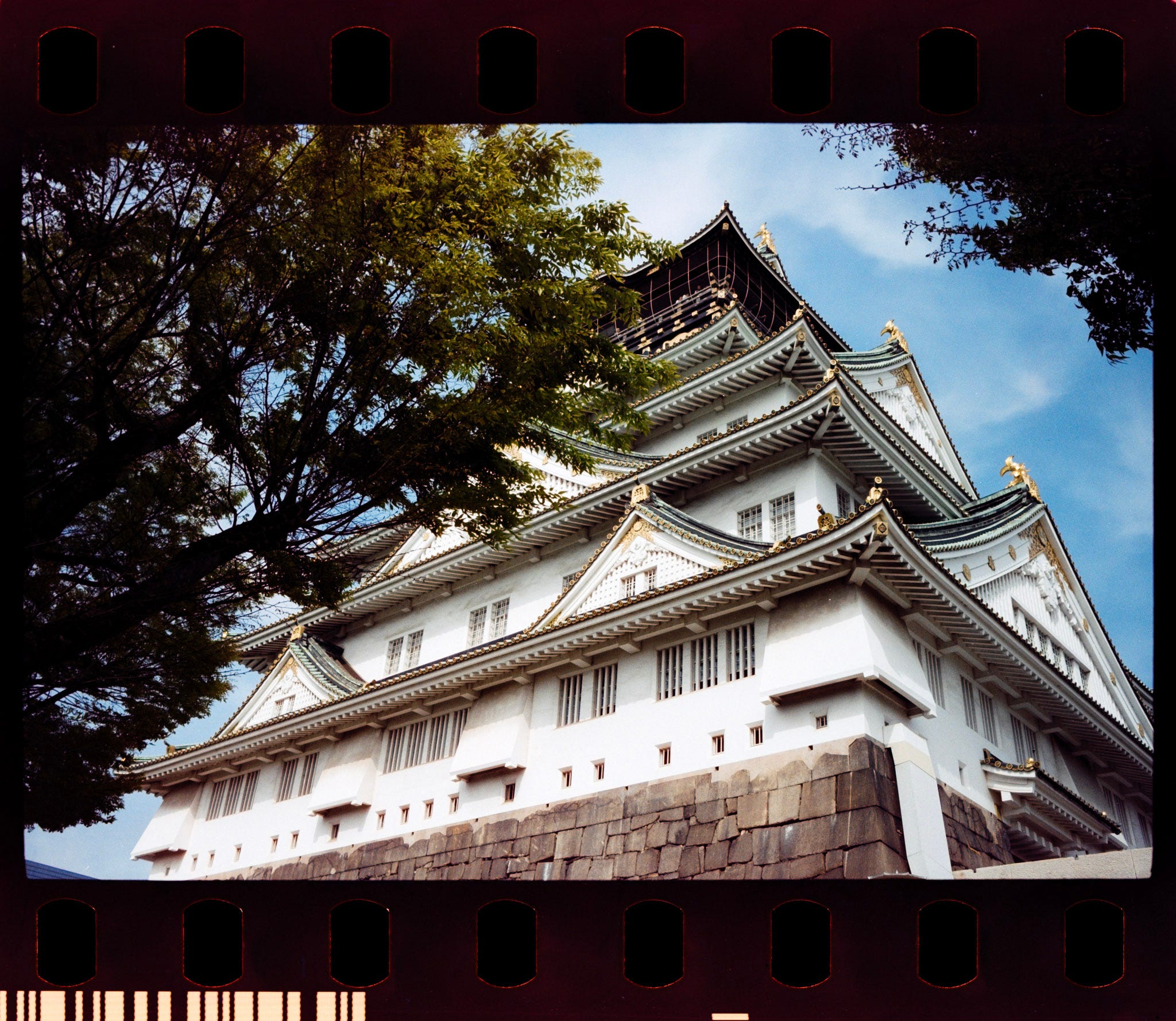 Film loaded in Osaka Castle, the day was beautiful, perfect for experimenting the Amber D100, a Japanese film stock, which is another Kodak VISION3 250D respool, with the remjet layer removed.