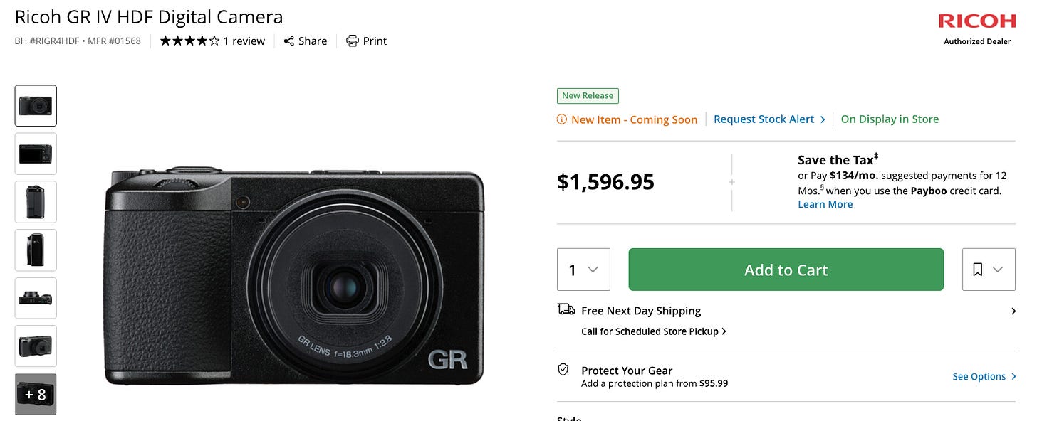 HDF stands for High Definition Filter. It’s a built-in diffusion filter on the lens that softens the image with a slight glow, similar to what you’d get with a physical filter in front of the lens. Ricoh sells it as a creative option for a more cinematic or film-like look. The HDF version costs $100 more than the standard GR IV.