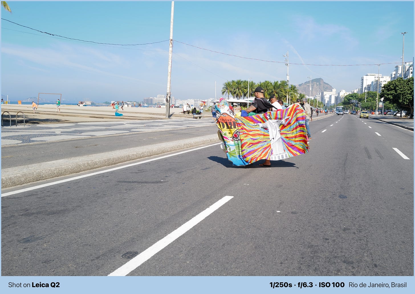 He walks the street with cloth outspread, Christ on his back, arms wide ahead. The waves applaud, the sky turns blue, Rio unfolds in every hue. A walking prayer without a sound, where sun and samba spin around. He carries faith, he carries flame, and sells the wind in beauty’s name.
