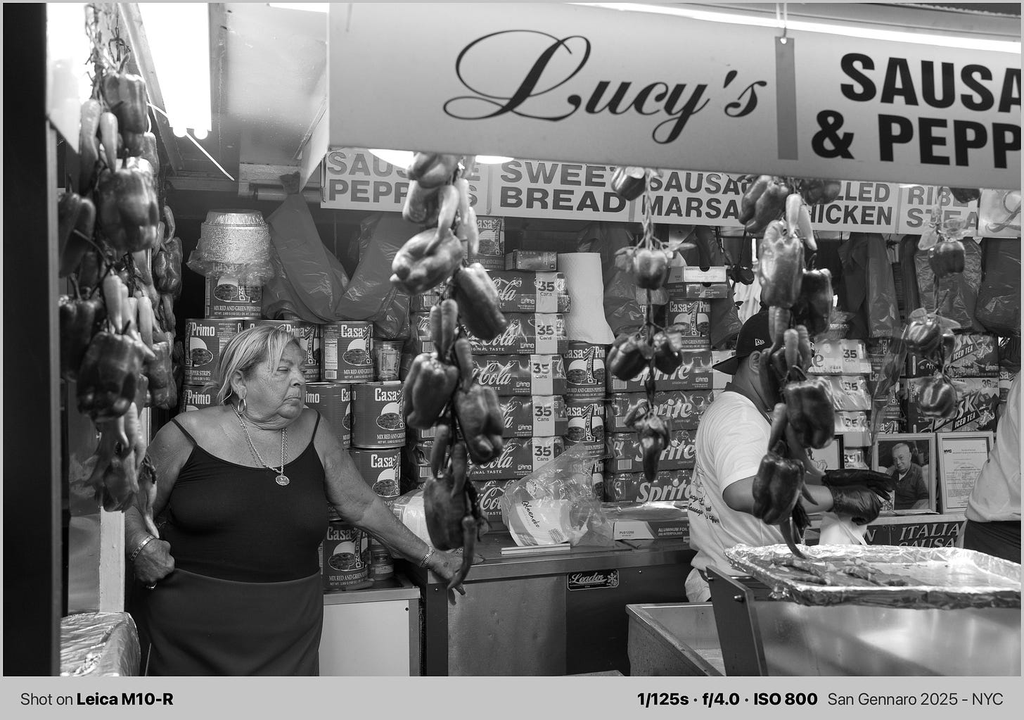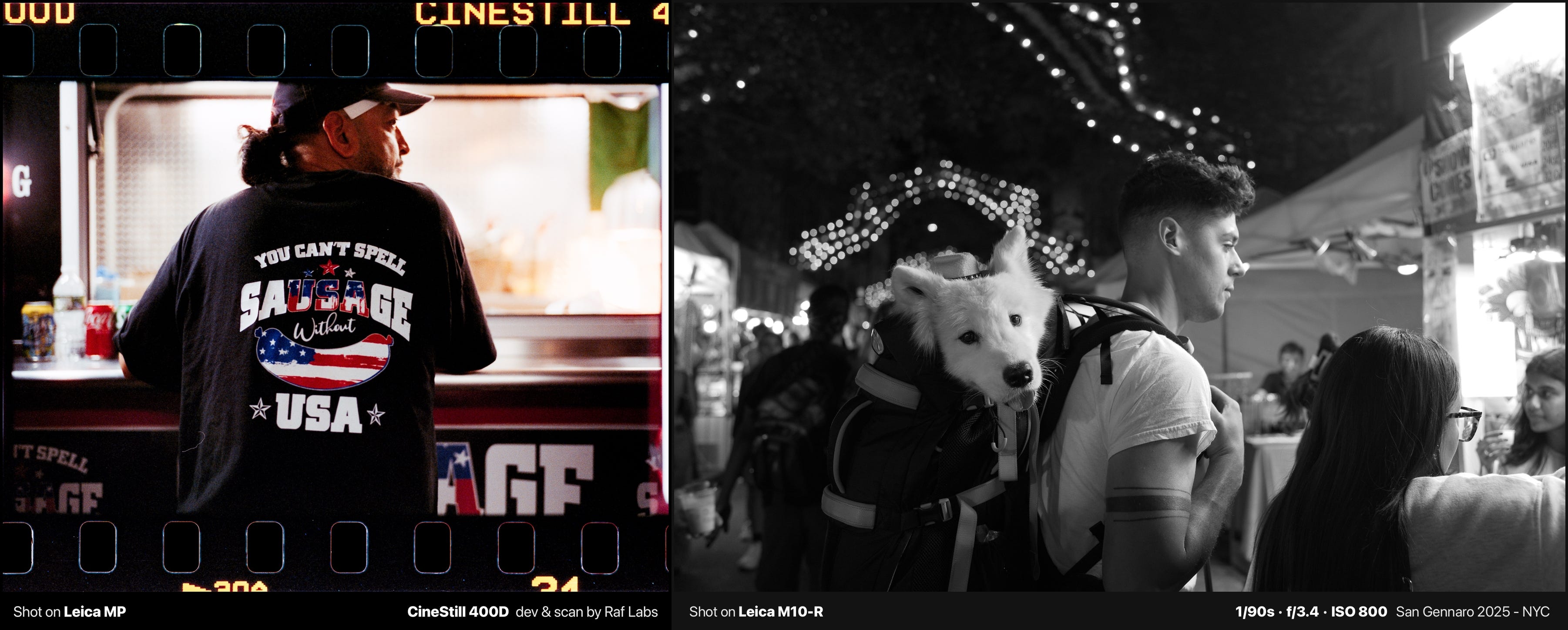 The mix of old and new was everywhere, which is a perfect addition to film. A vendor in a "You Can't Spell Sausage Without USA" shirt. A small dog in a backpack taking in the chaos.