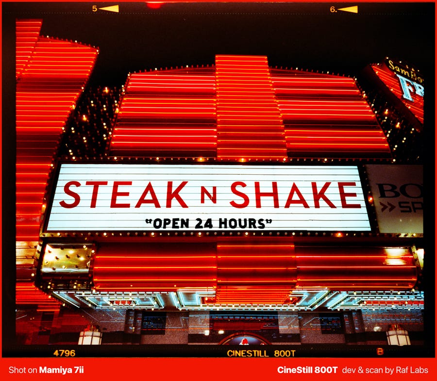 So I ignored it, used all my “Times Square flashing billboards exposure experience” film gave me, watched the scene for a while to understand its rhythm, and dialed in +1.5 EV based on what my meter was telling me. No test shot, no verification, just a commitment to the decision. I know that CineStill doesn't have the Remjet layer, and over exposing a little bit on film is always welcome.