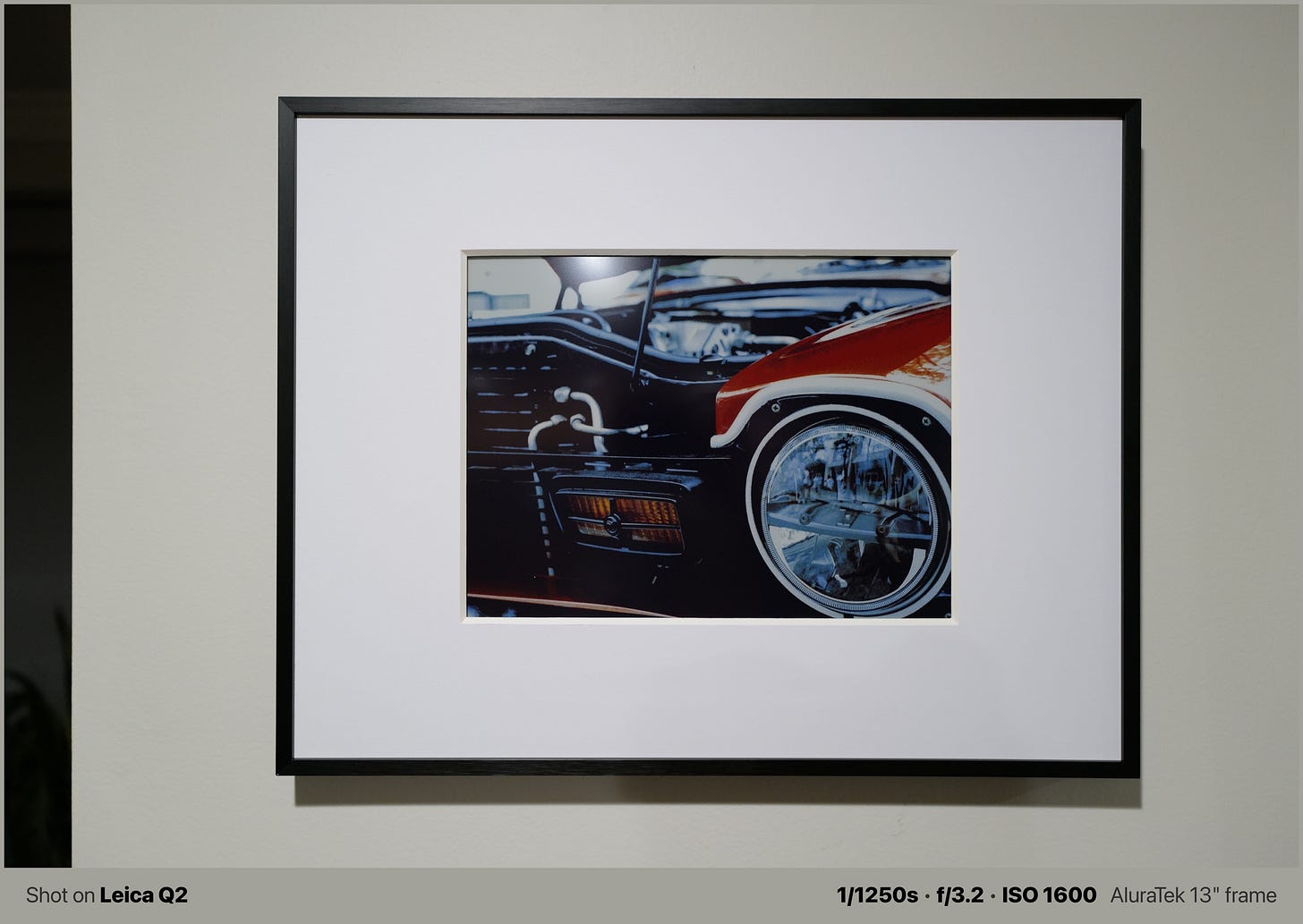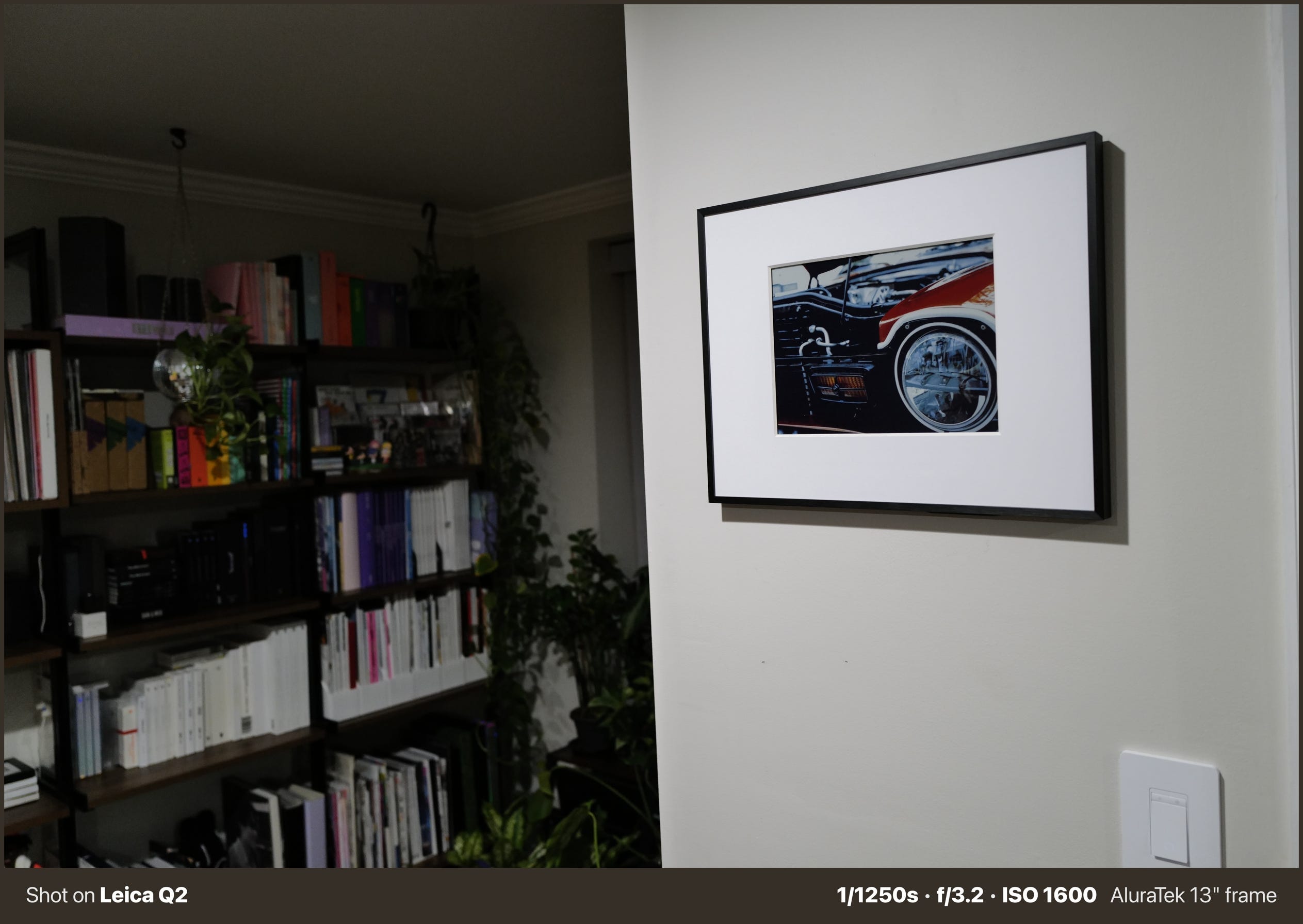 The hardware is as understated as it is refined. Solid-feeling frame, matte surface, optional white or black border mats included. No glowing edges. No branding. Just your photo on the wall, almost indistinguishable from a real print.