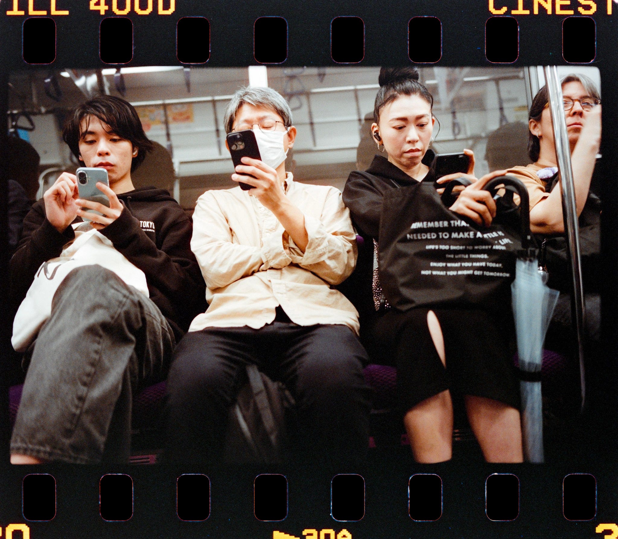 As we headed to Shibuya Scramble Crossing (渋谷スクランブル交差点), I took more subway shots, where the 400D presented some interesting halation effect. Of course the 800T is more prominent, but it’s younger brother is a very interesting alternative because it also brings the effect without costing a tungsten light to have accurate colors, as you’re gonna see next.