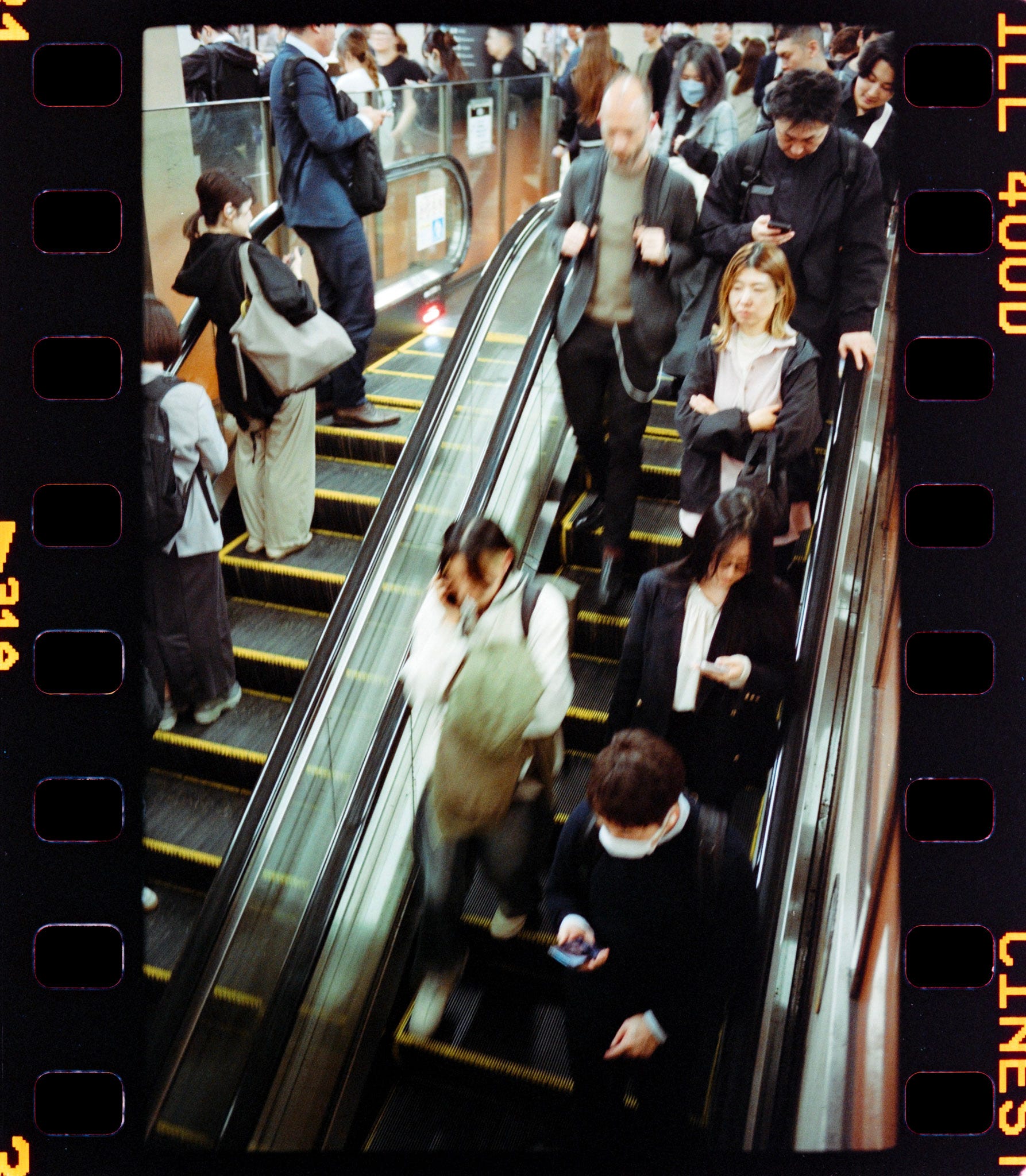 This first shot is one of the best I took on the trip so far in terms of nailing the movement in the still. Something that caught my attention in Japan was how fast and in a hurry people were moving, some were literally *running* on the street to catch an open pedestrian crossing signal or so. In Japan, cars drive on the right side of the road, and the same pattern apply to escalators - the right side goes fast while the left side stand still.