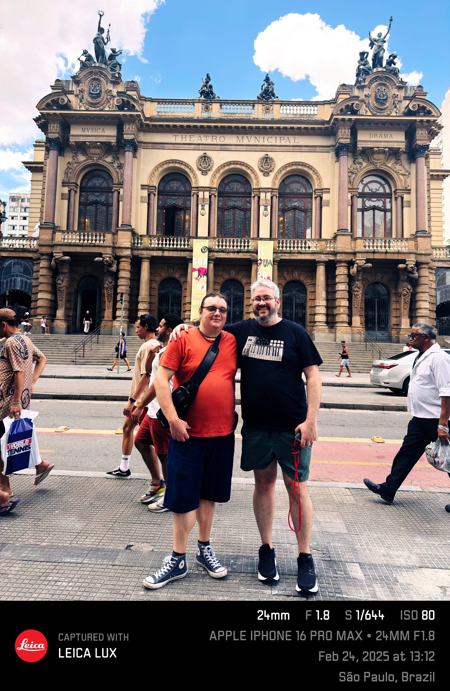 and I in front of the Municipal Theater in São Paulo. This theater has staged thousands of plays for the people who were there to enjoy. It’s not a cinema but a theater, so those who saw it, saw it; those who didn’t, won’t see it anymore, just like my films ruined and my very own eyeballs.