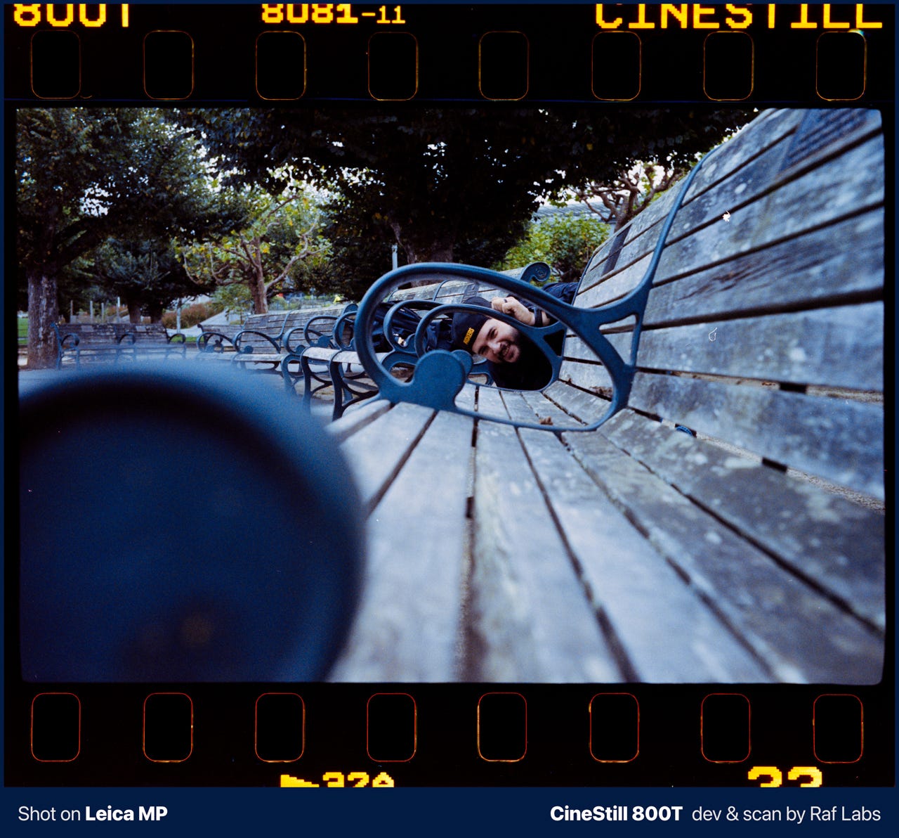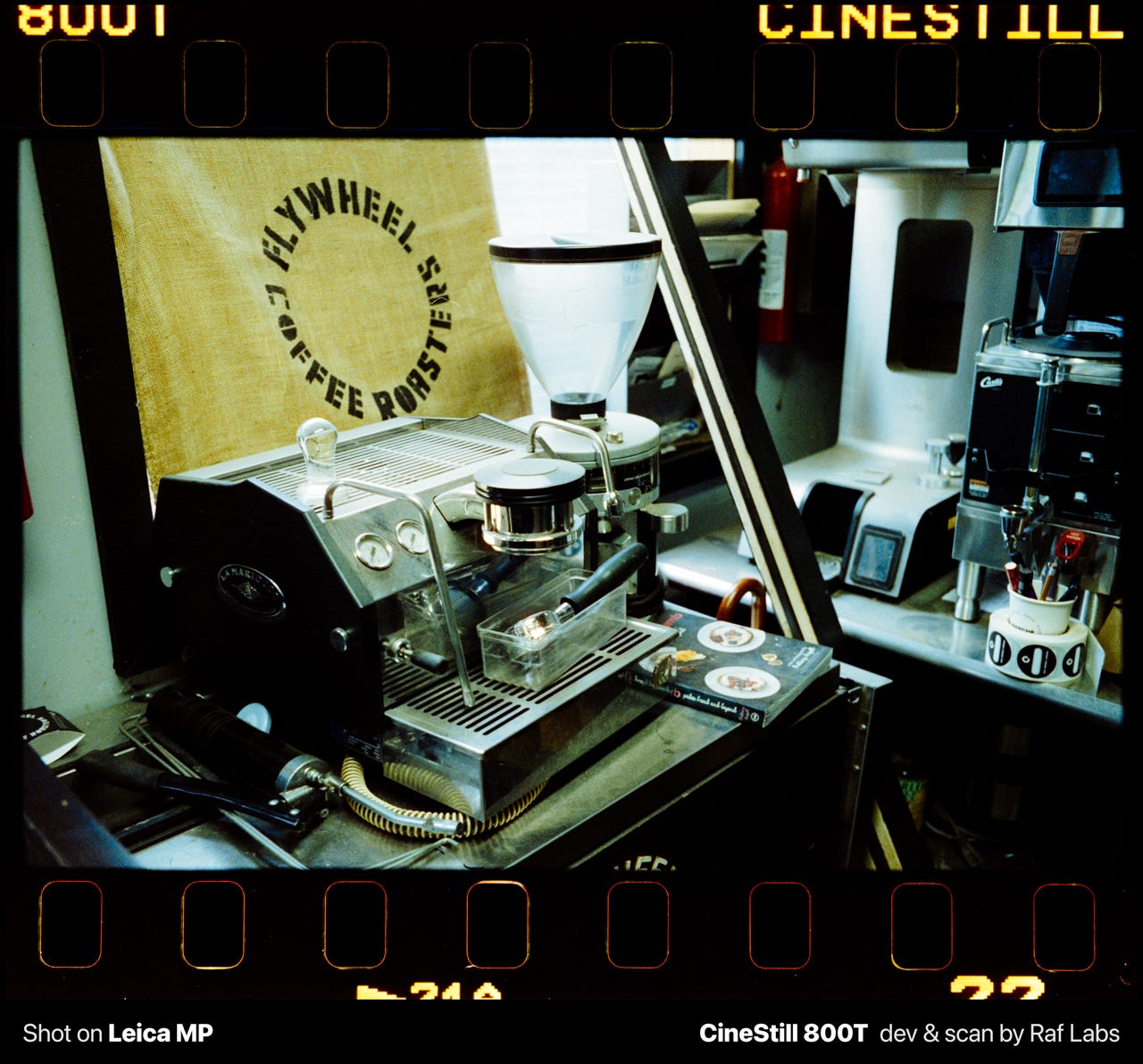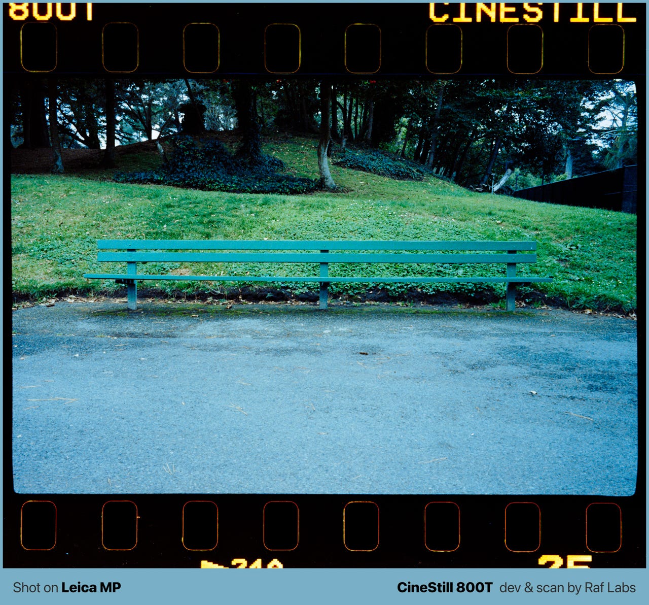 Wednesday started early with a visit to the Golden Gate Park before the crowds. The light was soft, the air was cool, and since I still had the 800T loaded, I got the completely wrong film for the scene. Tungsten-balanced stock under daylight skies creates this strange color shift. Everything leans teal and green. At least I could take this nice shot inside a coffee shop (tungsten light…).